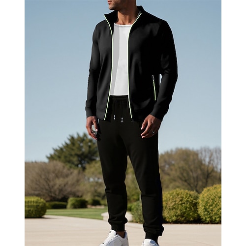Per uomo Maglia Tuta da Ginnastica Set di abiti Collo alla coreana All'aperto Quotidiano Sportivo Coulisse Con zip Tasca Semplice Rosso bordeaux Nero Blu marino Poliestere Abbigliamento sportivo Moda