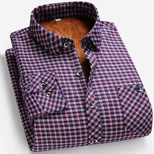 Herren Freizeithemd Flanellhemd Kariertes Hemd Knopfhemd Rote Blau Langarm Karo Revers Urlaub Alltagstauglich Button-Down Bekleidung Mode Lässig Bequem