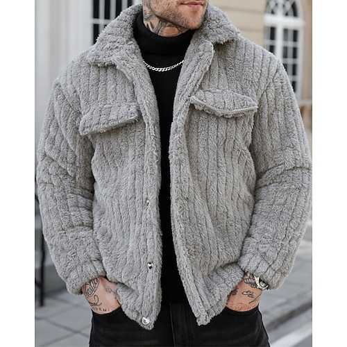 Herren Wintermantel Fleecejacke Freizeitjacke Outdoor Lässig Thermowarm Button-Down Herbst Winter Einfach Streetwear Täglich Umlegekragen Regulär Schwarz Grau Jacken