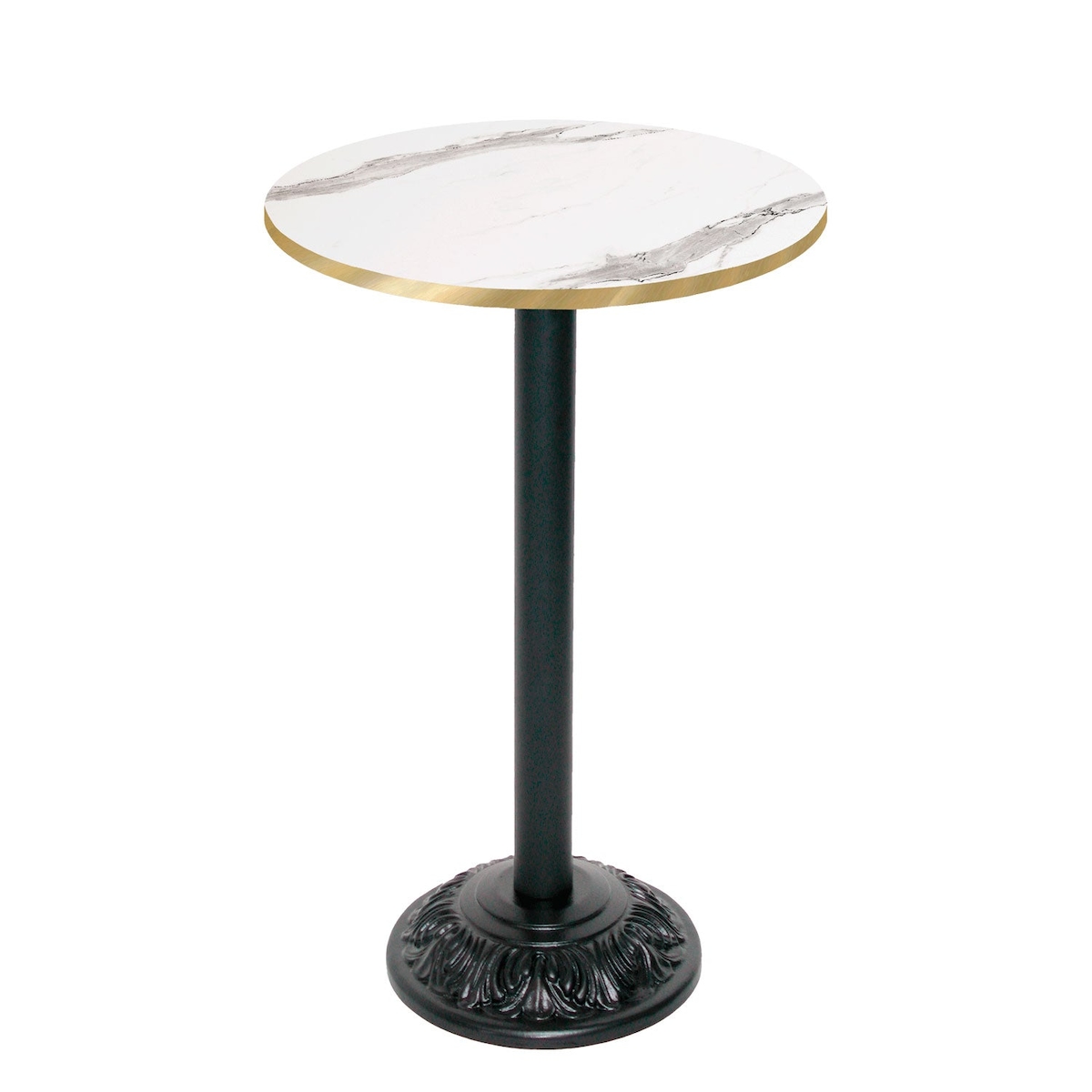 Restootab Stehtisch Bistrot-Stil Ø60cm - Modell weißer Marmor mit messingfarbenen Kanten