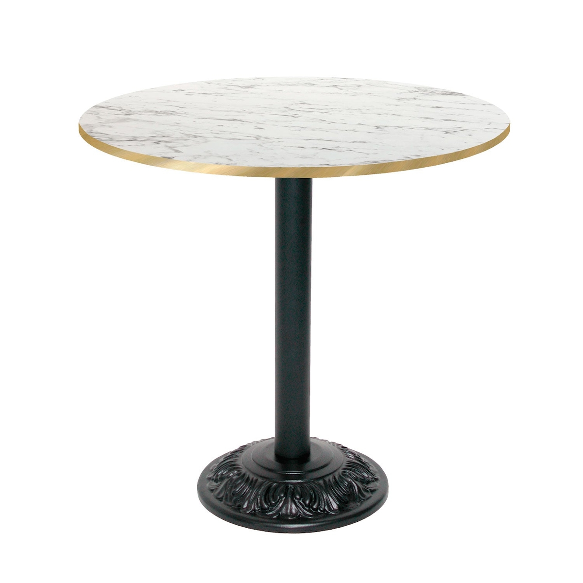 Restootab Tisch Bistrot-Stil Ø70cm - Modell Calacatta mit messingfarbenen Kanten