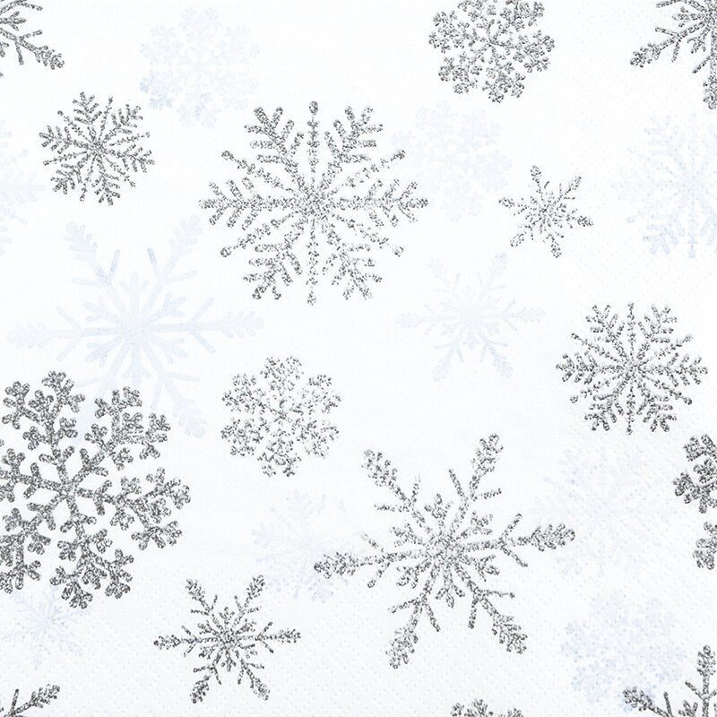 Home Fashion, Snow Crystals silver, Lunch-Servietten aufgefaltetes Maß 33 cm x 33 cm, im Viertelfalz, 20 Stück pro Pack