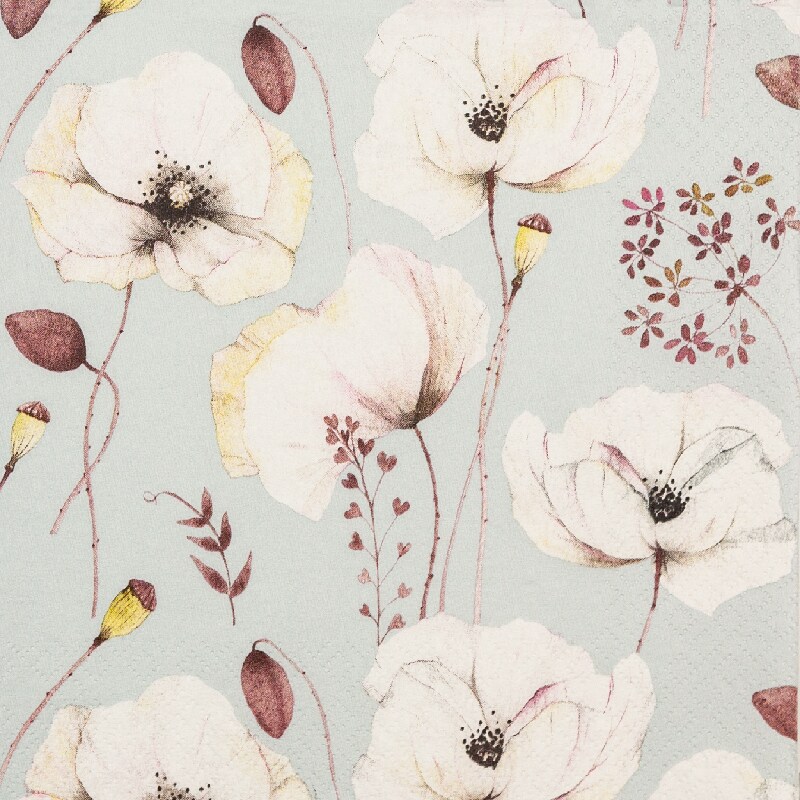 Home Fashion, Delicate Poppies, Lunch-Servietten aufgefaltetes Maß 33 cm x 33 cm, im Viertelfalz, 20 Stück pro Pack