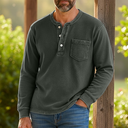 Per uomo Maglia Henley Camicia 100% cotone lavaggio acido Manica Lunga Henley Primavera Autunno Tutte le stagioni Semplice Vintage Retrò Vintage Casual Stile Vintage Lavato Casual Casuale Athleisure