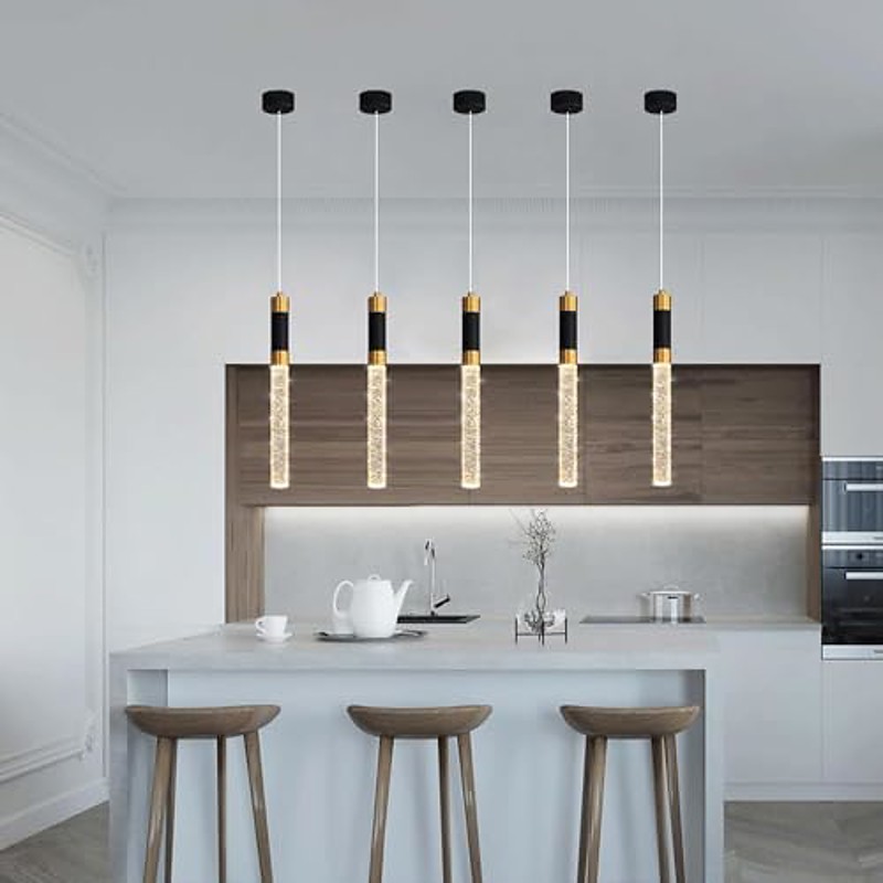 LED Pendant Light Dimmable 34cm Crystal Modern Kitchen Island Light Fixture,Adjustable Pendant Lighting for Kitchen Island,Black Gold Led Chandelier for Dining Room,Bedroom,Mini Pendant Spot Lights (1-Pack)