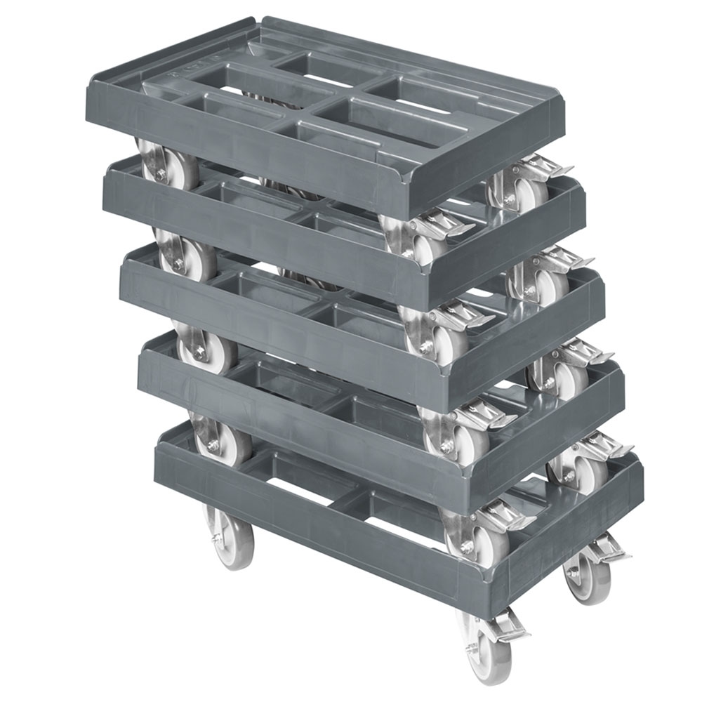5 Stück Transportroller für Kisten 60 x 40 cm mit 2 Bremsen in grau
