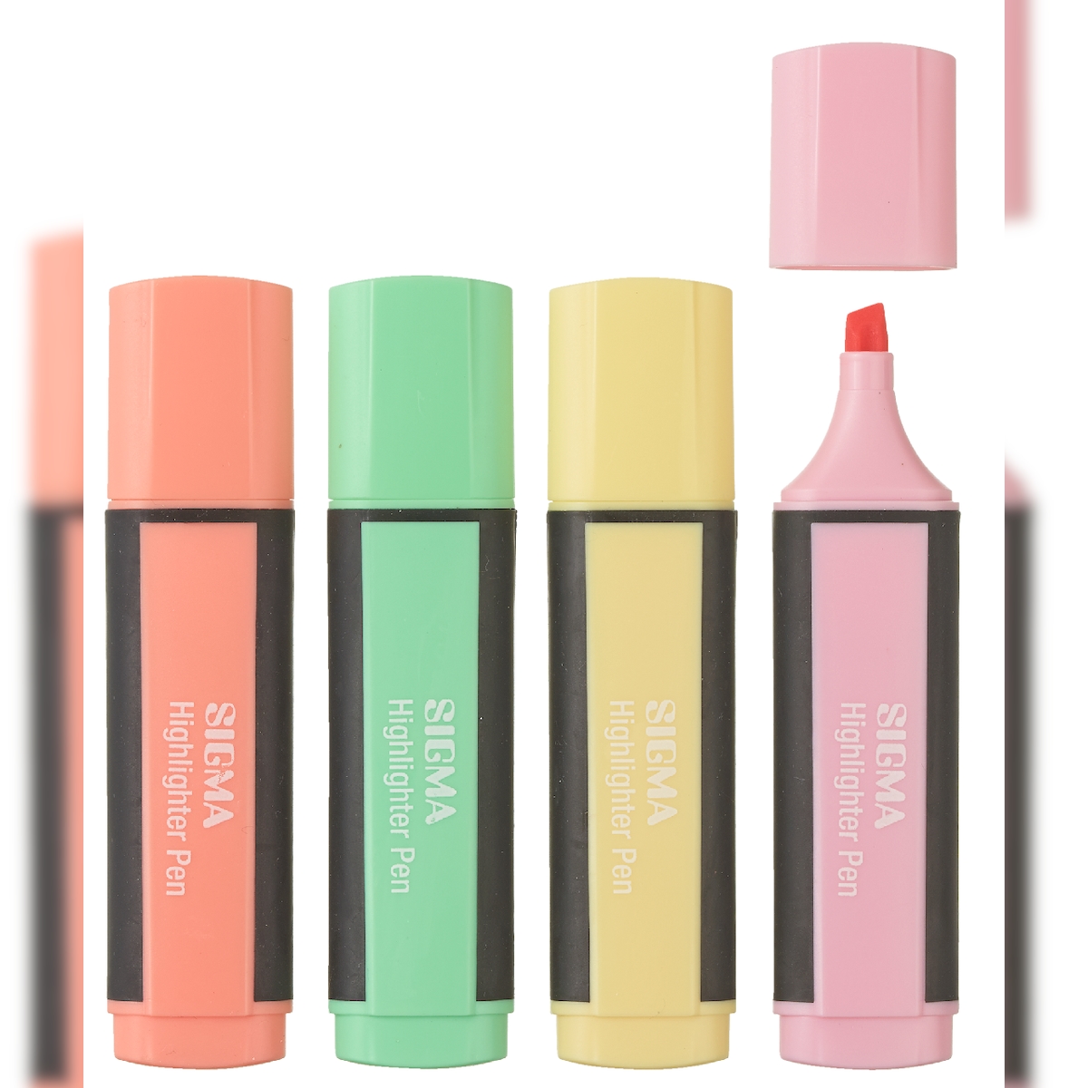 SIGMA Textmarker, farbig sortiert, Flachspitze, Strichstärke 0.7 mm, mit Schutzkappe, 4 Stück