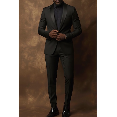 Uomo Matrimonio Feste Completi Bavero sciallato Dentellato Nero Rosa Moda Quotidiano Tinta unita Vestibilità su misura 2 pezzi Monopetto a un bottone
