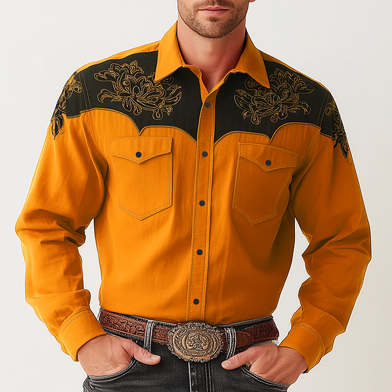 Men's Floral Print Flowers Shirt Western Shirt Cowboy Shirt Long Sleeve Vintage Retro Outdoor Vacation Spring Fall Turndown 3D Print Linen Like Shirt Red Orange Green Gray
