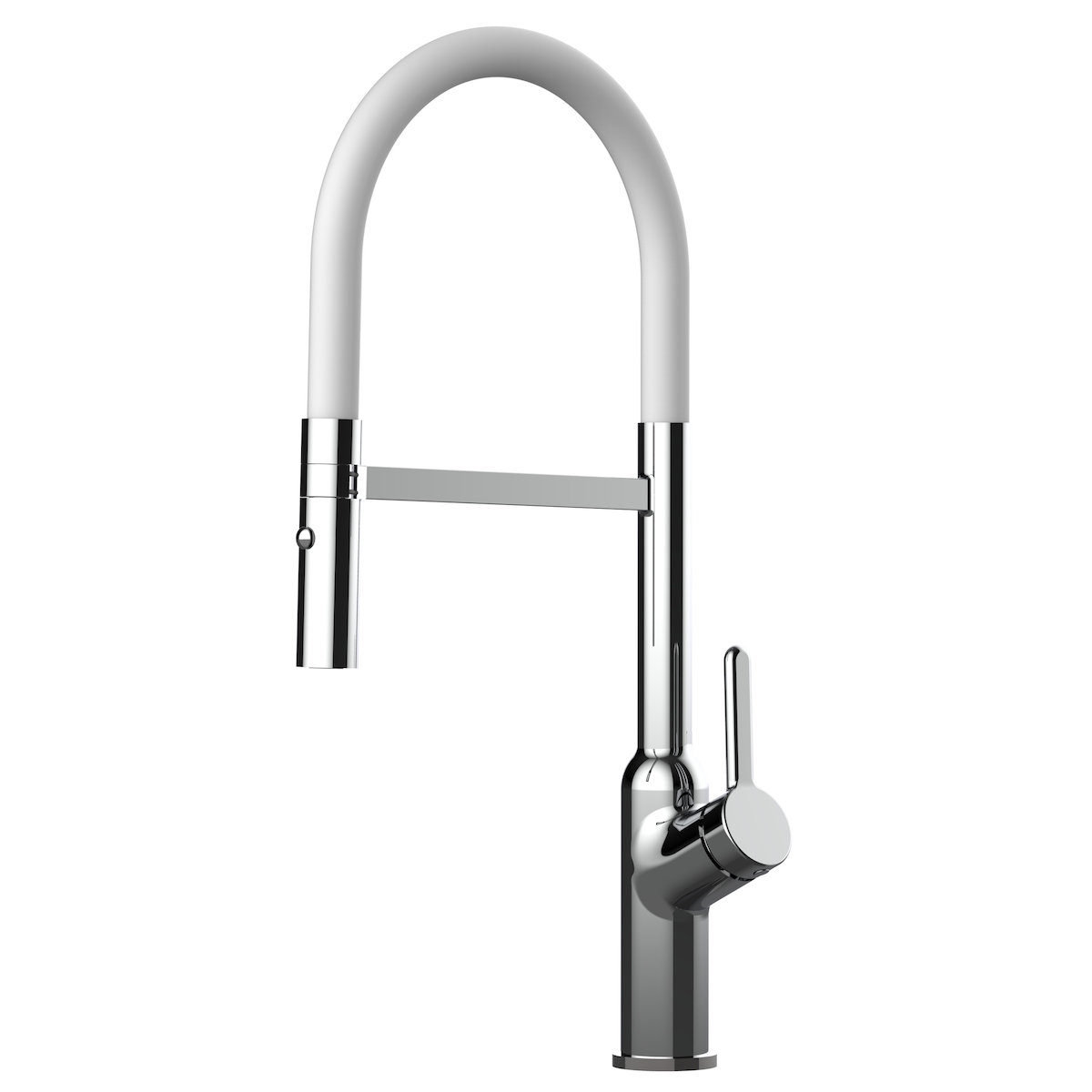 Vizio Wasserhahn Küchenarmatur Spültischmischer BOD, Verchromt, mit 360° schwenkbarem Weiss Auslauf und abnehmbare 2 strahl Handbrause