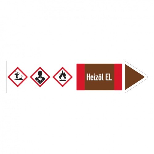 Aufkleber I RKZ-Etikett Heizöl EL,rechts,DIN 2403,braun/weiß/rot,ab Ø 90mm,440x100mm,2/Bogen