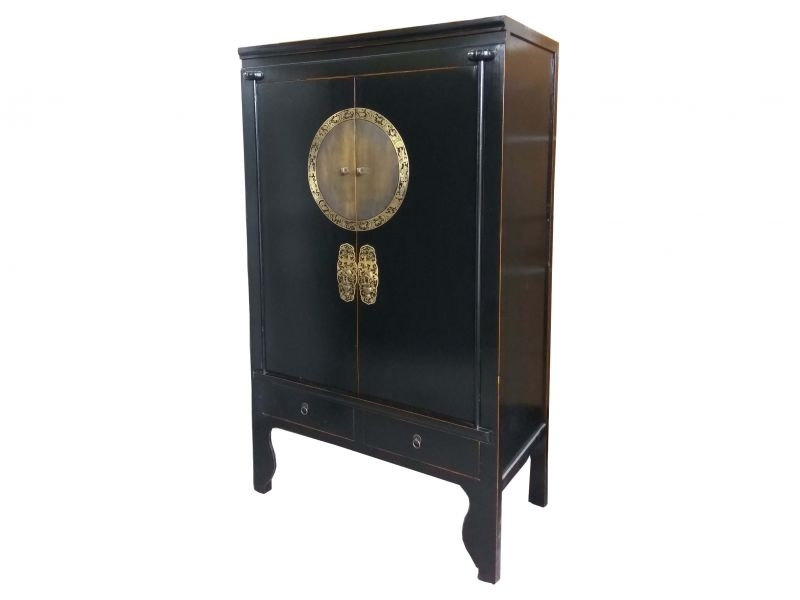 OPIUM OUTLET Möbel Kommode Schrank Sideboard Hochzeitsschrank A502/BLACK schwarz vintage asiatisch chinesisch orientalisch Holz