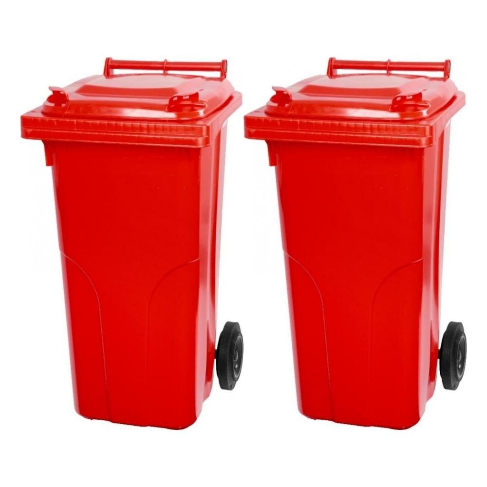 Mega Deal 2x PROREGAL 2-Rad-Mülltonne, 120 Liter, HDPE Kunststoff, Rot, Mülltonne, Müllgroßbehälter, Mülleimer, Abfalltonne, Müllbehälter