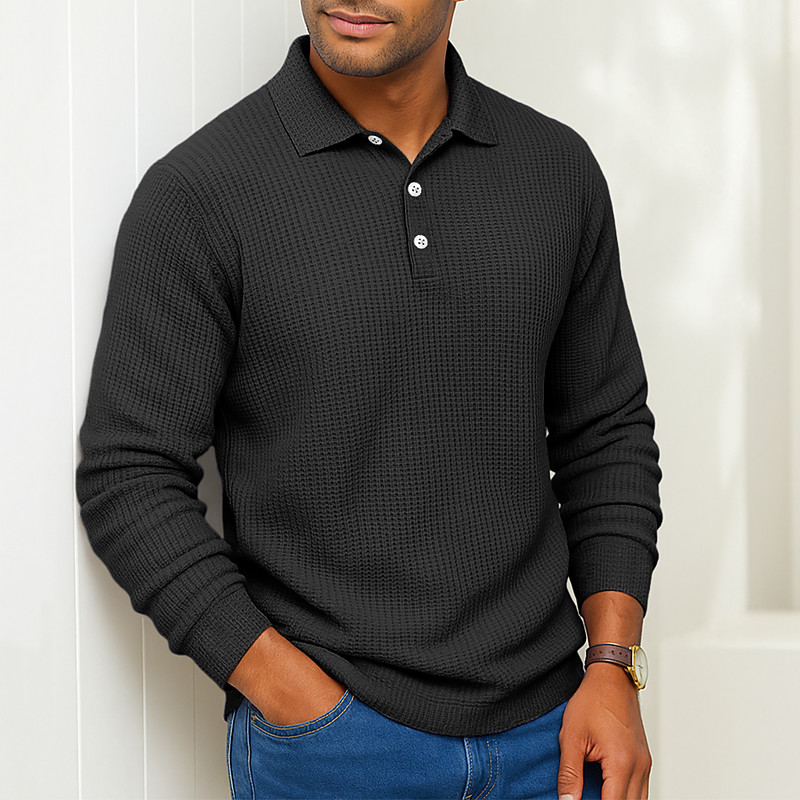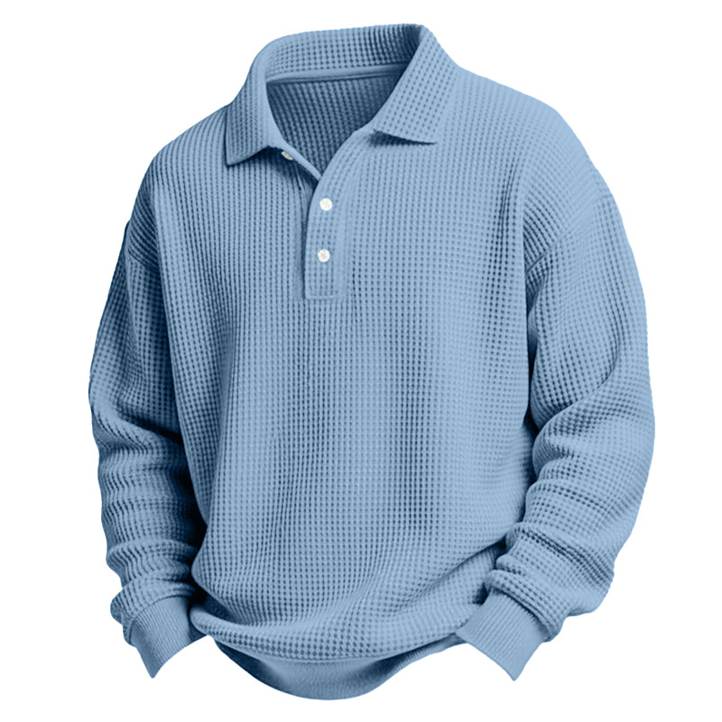 Men's Waffle Polo Shirts Polo Casual Formal Turndown Long Sleeve Fashion Solid Color Textured Buttons Plain Fall Spring Fall Fall Winter Regular Fit Light Green Light Grey Dark Blue Light Blue
