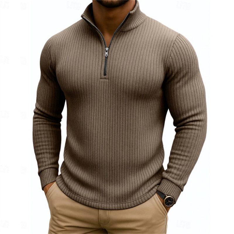 Men's Polo Textured Casual Quarter Zip Long Sleeve Casual Old Money Style Striped Zipper Stripe Spring Fall Spring Summer Slim Fit Blue Light Pink Light Blue Black White Light Green Polo