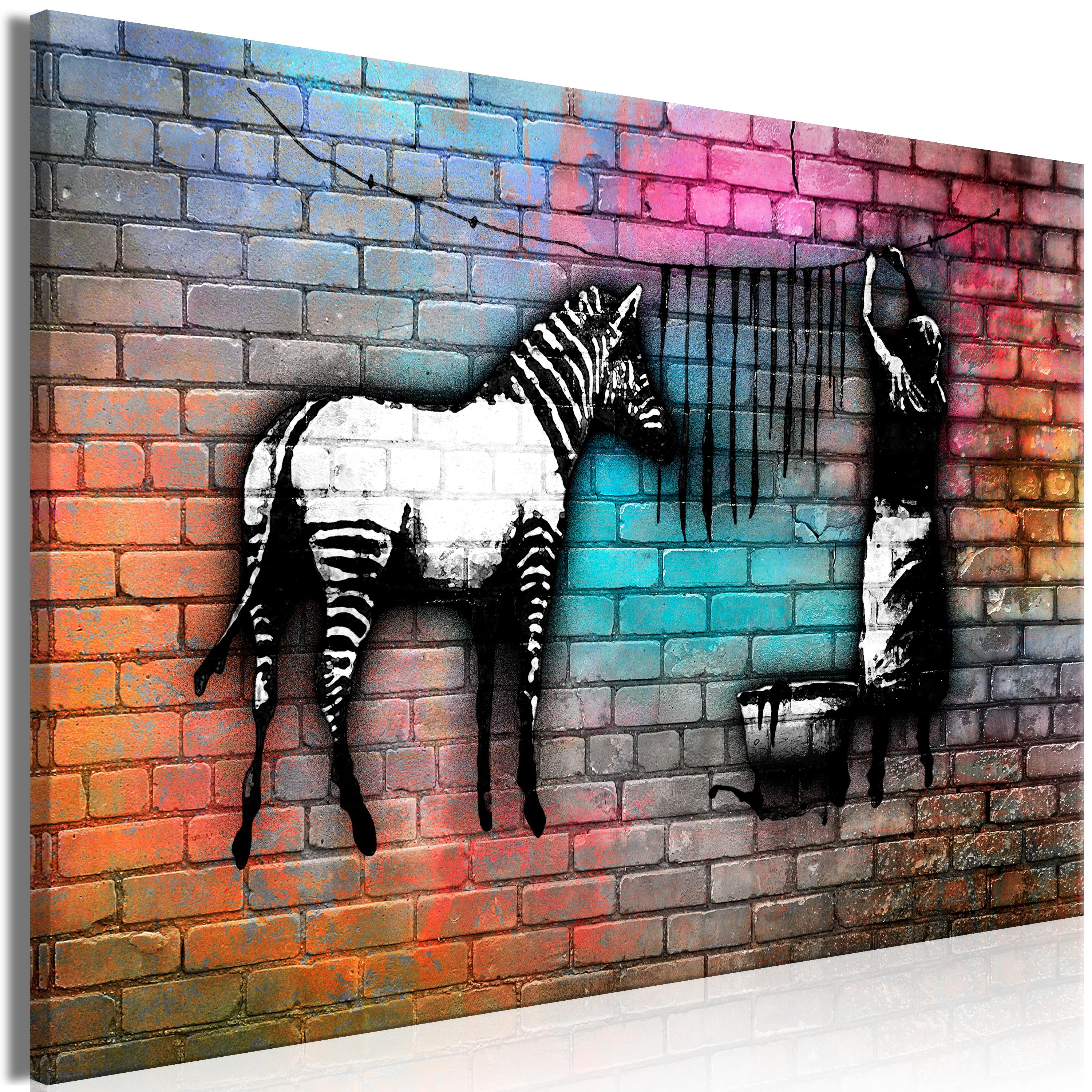Billede - Washing Zebra - Colourful Brick (1 Part) Wide - 30 x 20 cm - På italiensk lærred