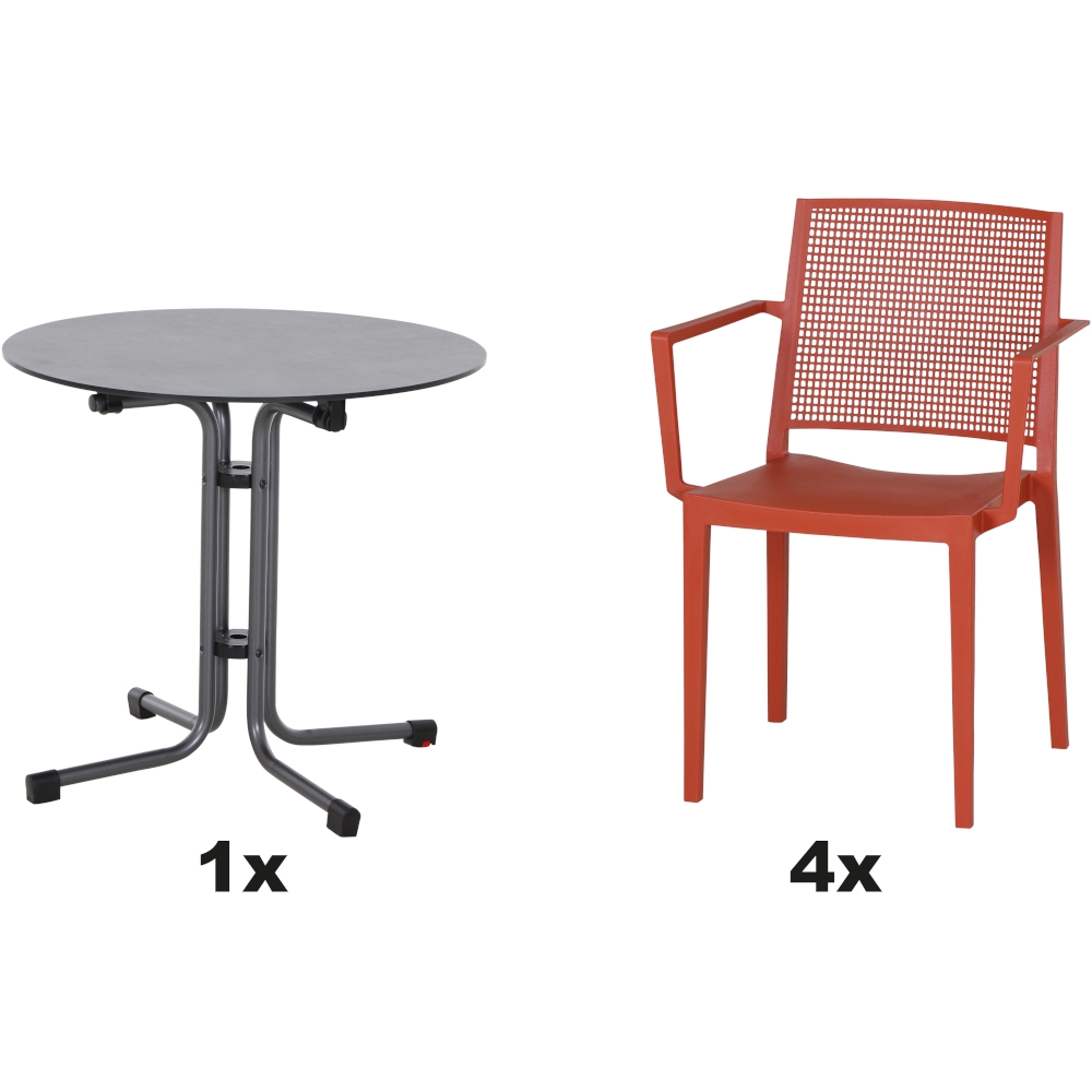 SIENA GARDEN Urban Lights Set 5teilig Square Sessel gastrotauglich brick mit Tisch Sola Ø80