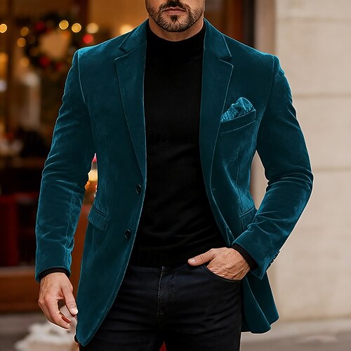 Per uomo Blazer Affari Cocktail party Ricevimento di matrimonio Moda Casual Primavera Autunno Poliestere Semplice Tasca Bottoni Confortevole Monopetto Giacca Rosso Blu reale Verde
