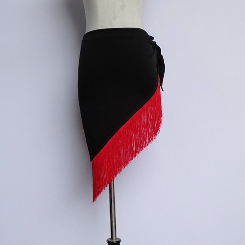 roter asymmetrischer Fransenrock für lateinamerikanische Tänze, Damen