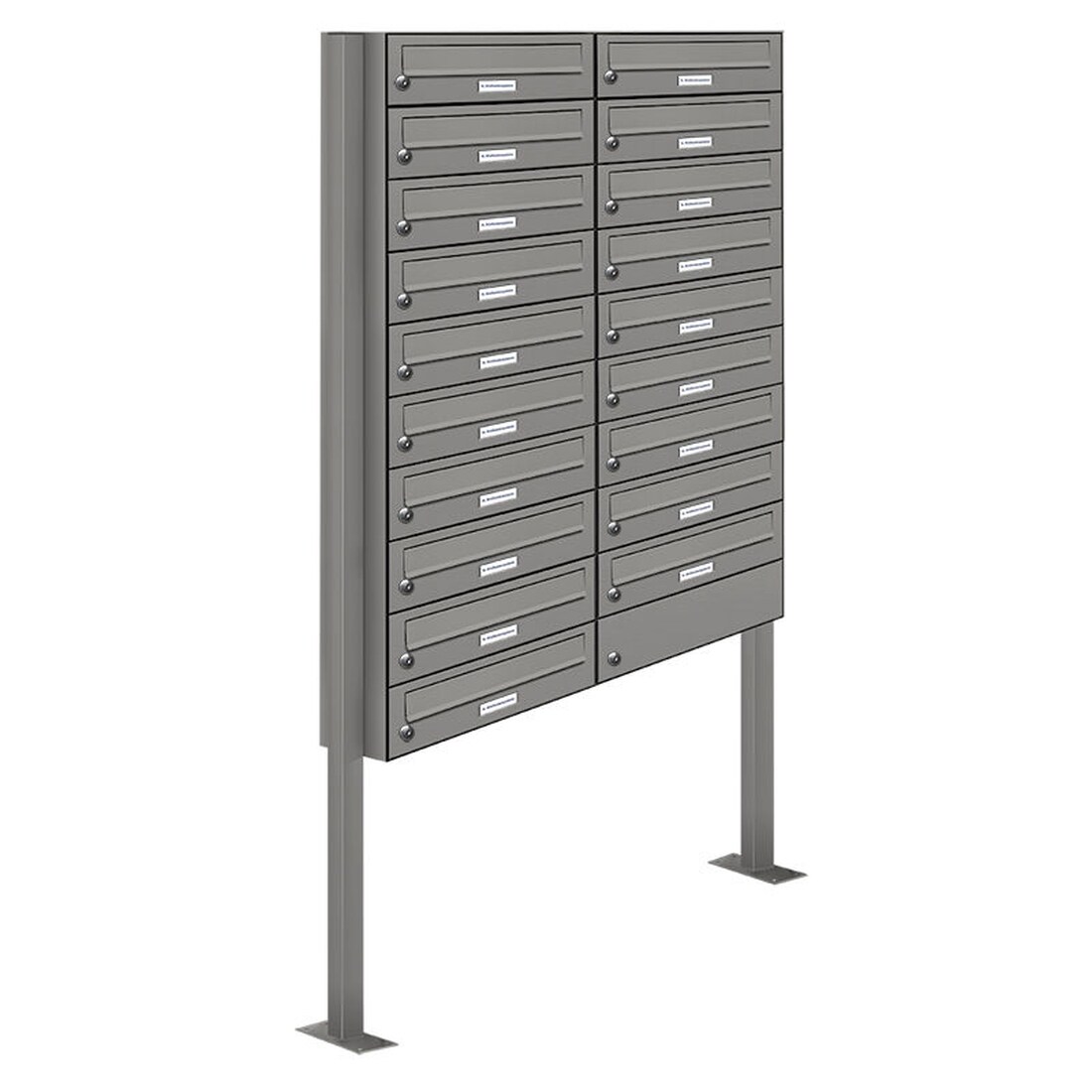 AL Briefkastensysteme 19 Fächer Premium Stand Briefkasten Anlage in RAL 9007 Aluminium Grau, Post A4, robust, wetterfest, Artikelnummer: 132P19S2P9007