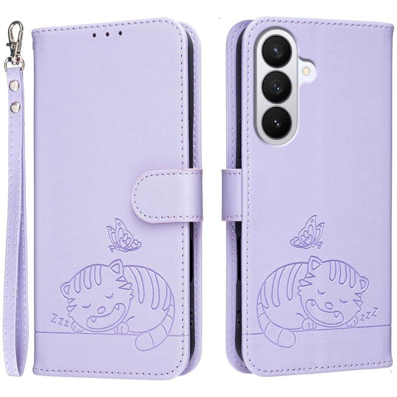 Plånboksfodral för Samsung Galaxy S26 Konstläder med rem - Lila
