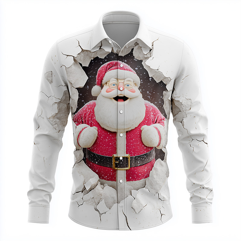 Christmas Men's Santa Claus Cracked Wall Shirt Button Up Shirt Long Sleeve Funny Outdoor Holiday Spring Fall Turndown 3D Print Collared Shirts White 1 White White 2