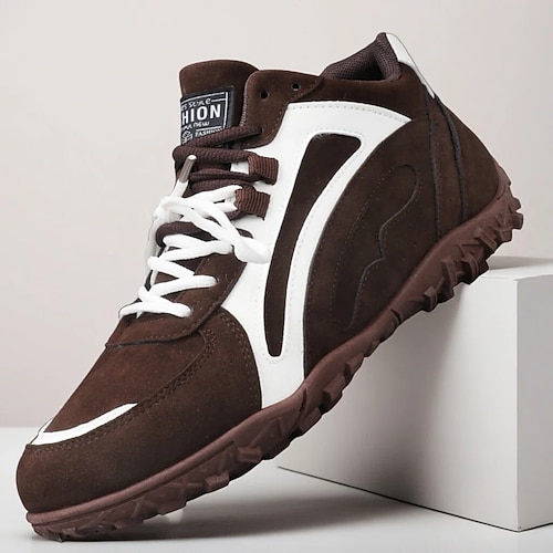 scarponi da trekking marroni da uomo: resistenti scarpe da ginnastica in similpelle con suola antiscivolo per avventure all'aria aperta e abbigliamento invernale