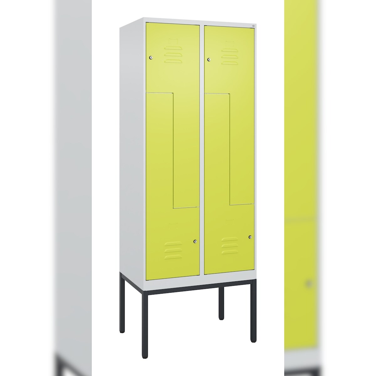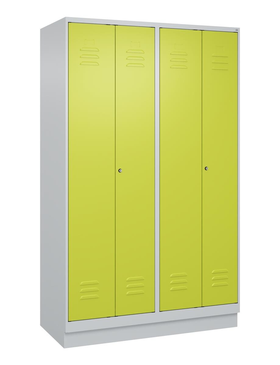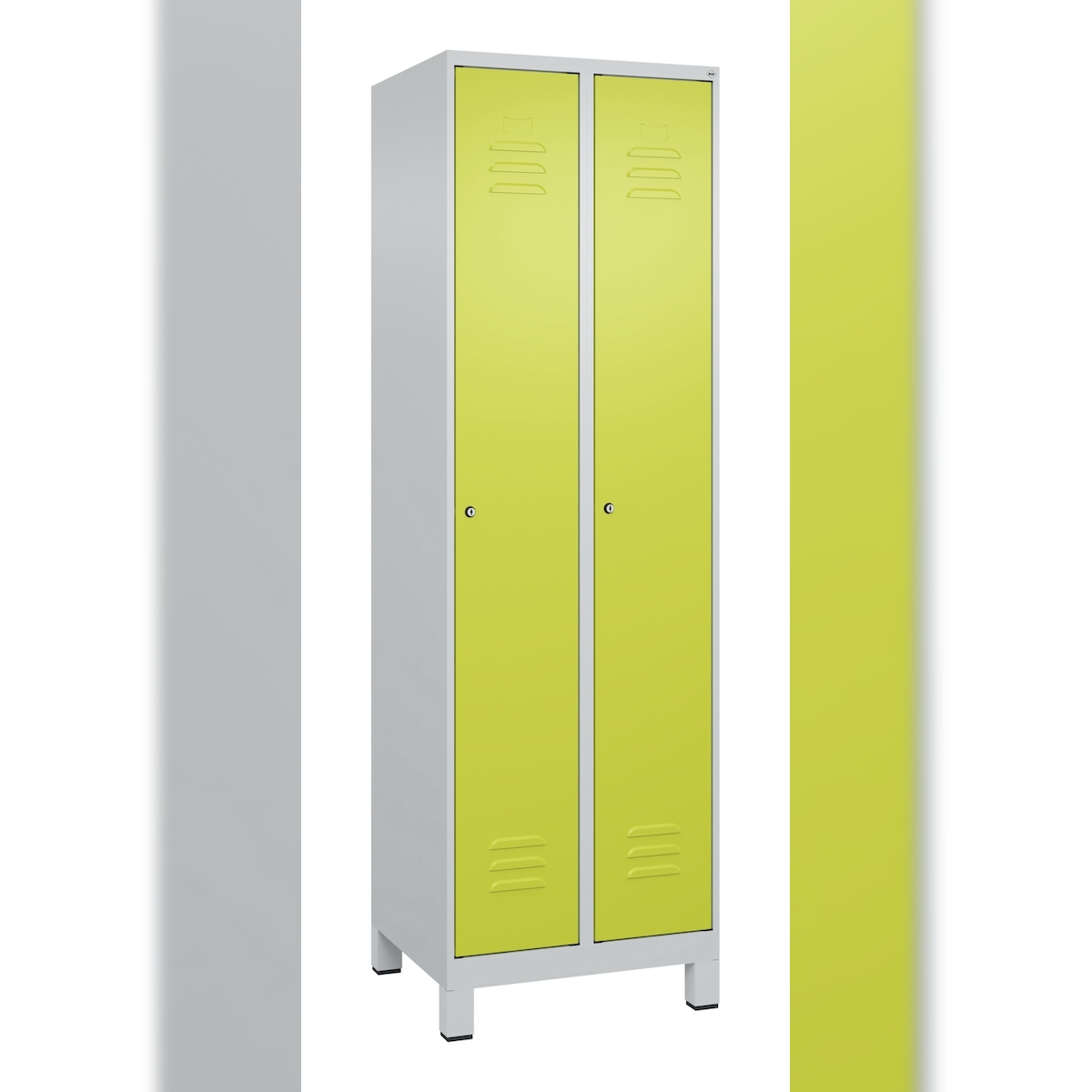 C+P Spind Classic PLUS, Füßen, 2 Abteile, HxBxT 195x60x50cm, Zylinderschloss, Hellgrau/Clowngrün von PROREGAL