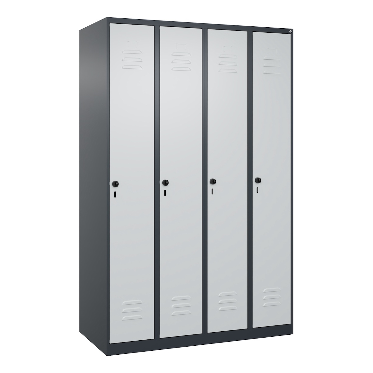 C+P Spind Classic PLUS, 4 Abteile, HxBxT 185x120x50cm, Sicherheitsdrehriegel, Anthrazit/Hellgrau von PROREGAL