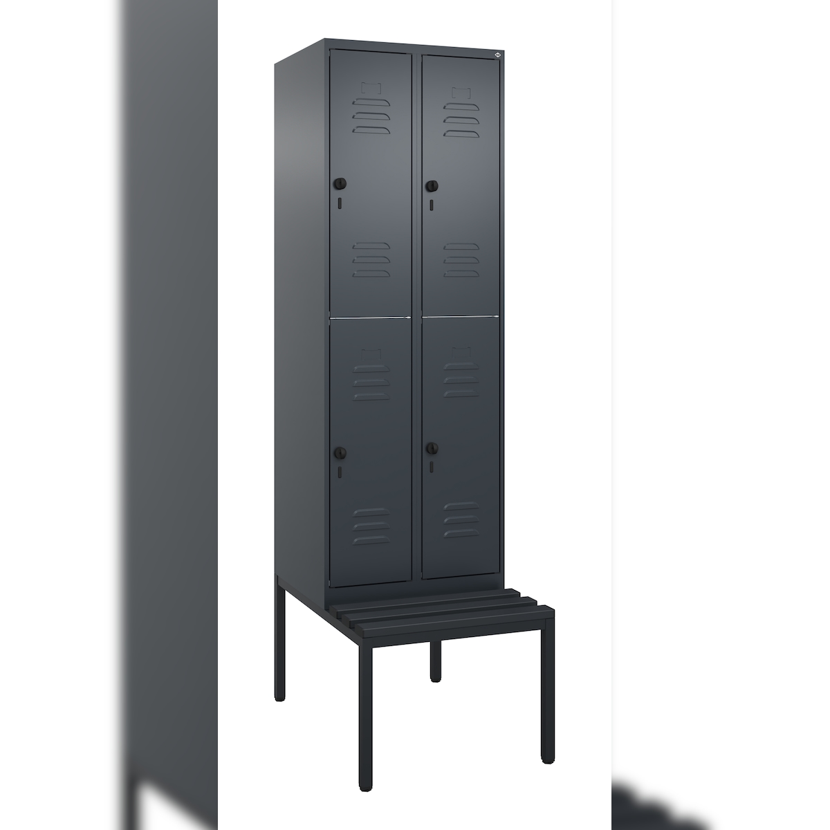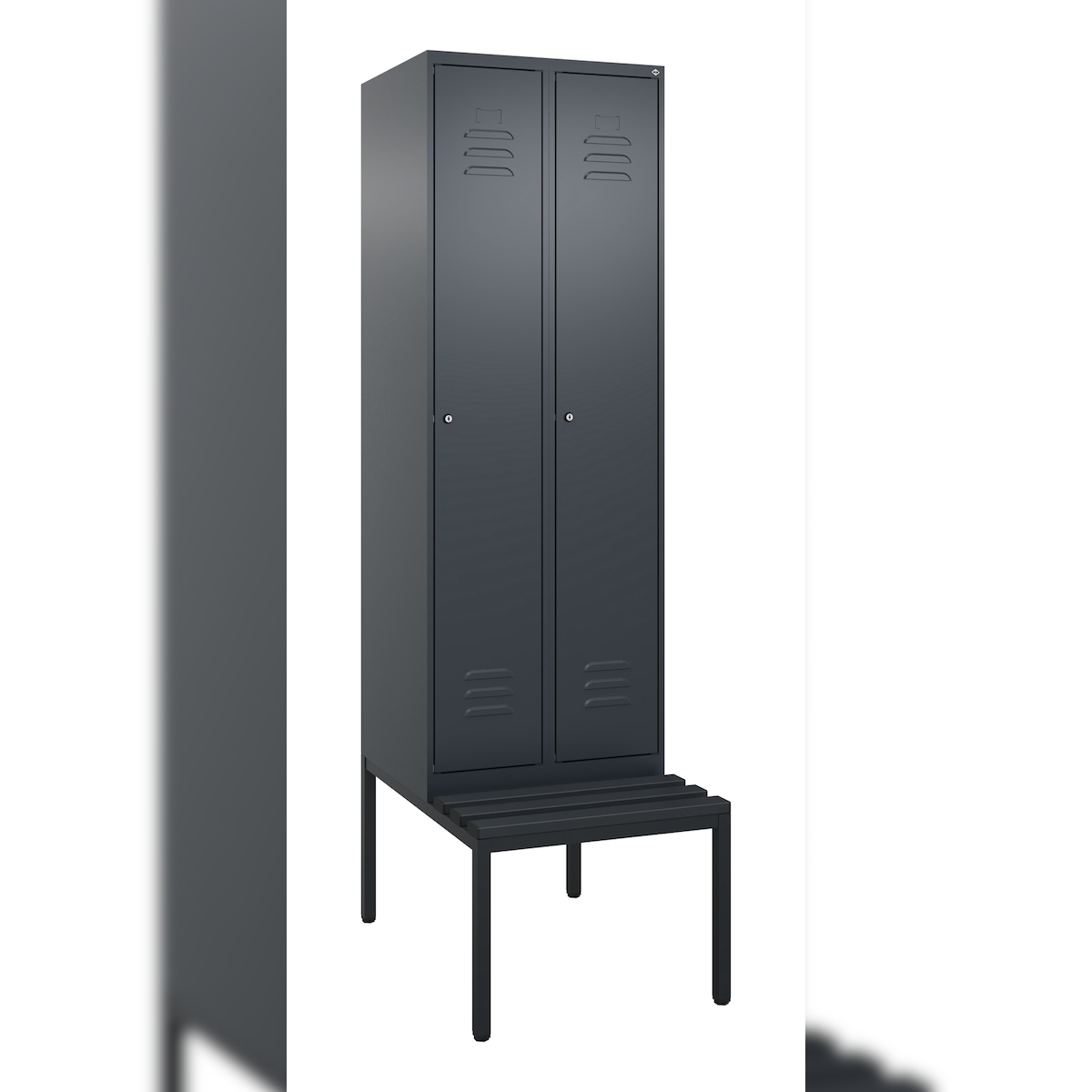 C+P Spind Classic PLUS, Kunststoff untergebaute Sitzbank, 2 Abteile, HxBxT 212x60x82cm, Zylinderschloss, Anthrazit von PROREGAL