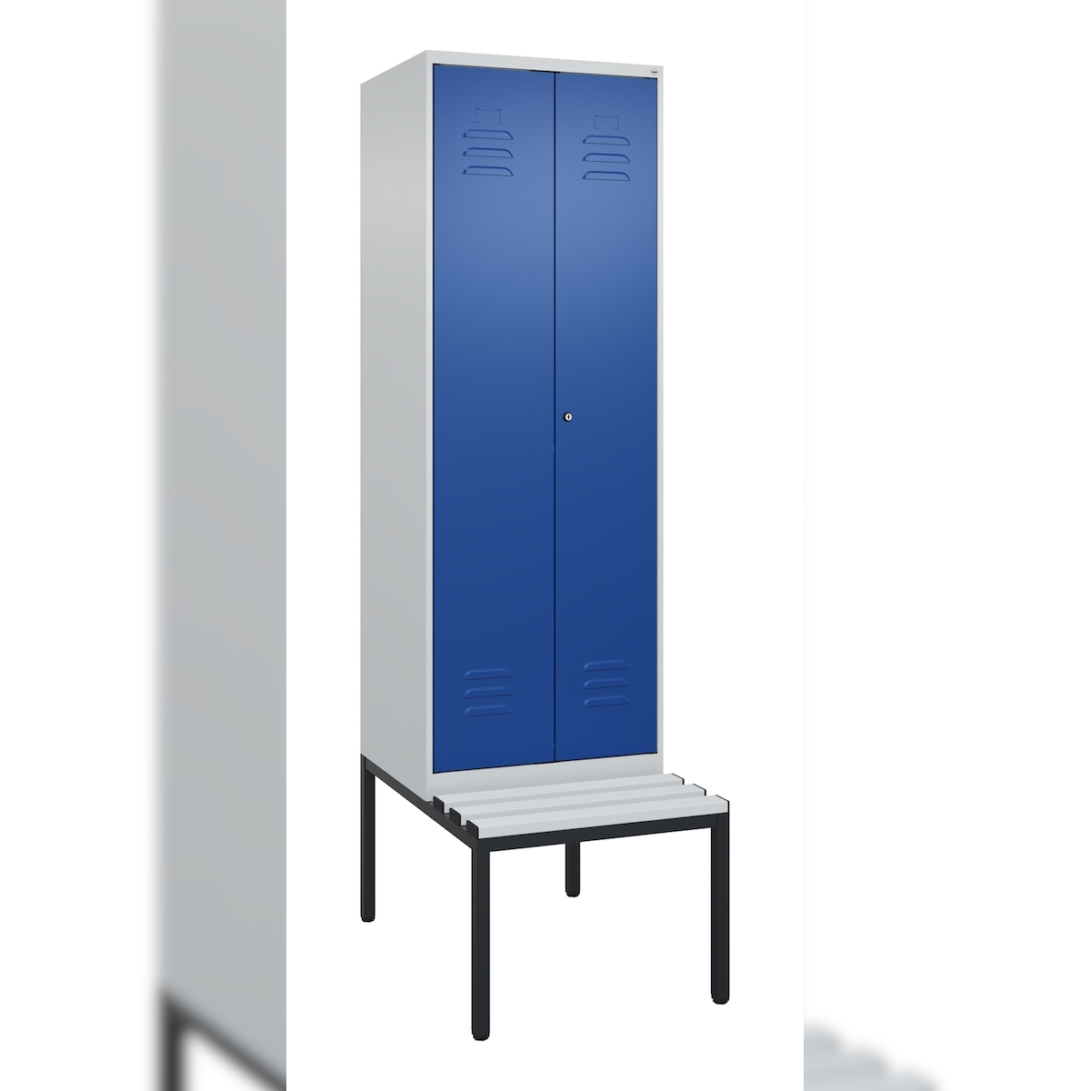 C+P Doppel-Spind Classic PLUS Kunststoff untergebaute Bank, 2 Abteile, HxBxT 212x60x82cm, Zylinderschloss, Hellgrau/Enzianblau von PROREGAL