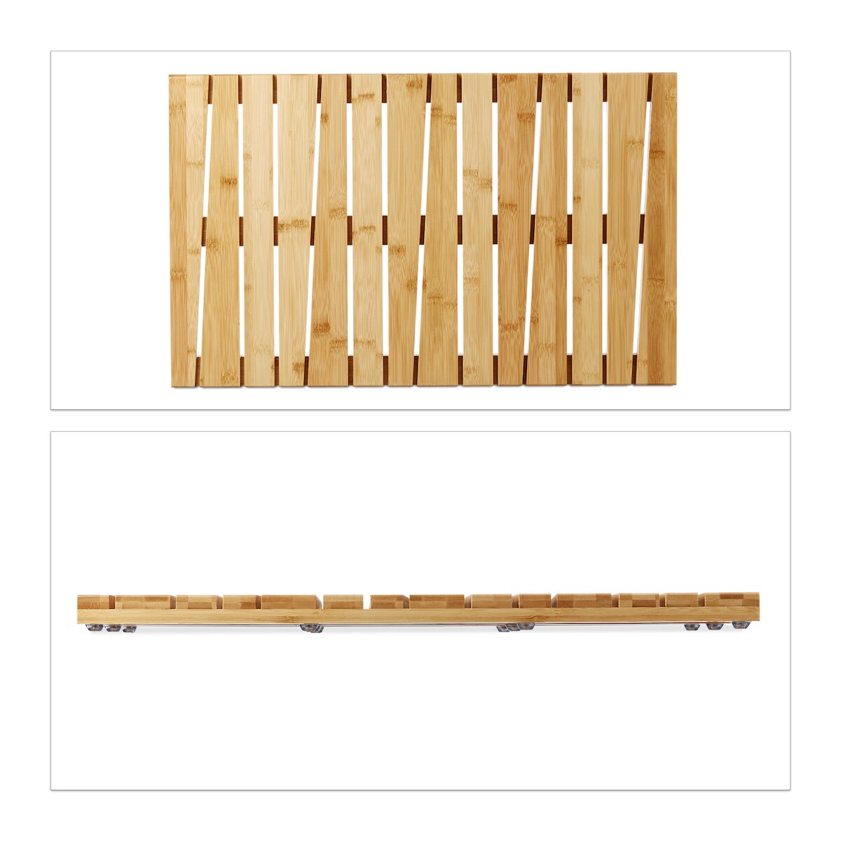 Relaxdays Bambusmatte, für Badezimmer, Stopper, hygienisch, feuchtigkeitsbeständig, Fußmatte 40x65 cm, naturfarben