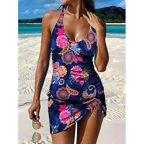 Per donna Costumi da bagno Tankini Gonna Costume da bagno All'americana Elegante Vacanza Floreale Grafico Senza Maniche Costumi da bagno