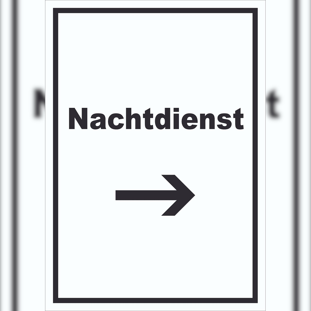 HB-Druck Nachtdienst Schild mit Text und Richtungspfeil rechts Nachtschalter hochkant A0 (841x1189mm)