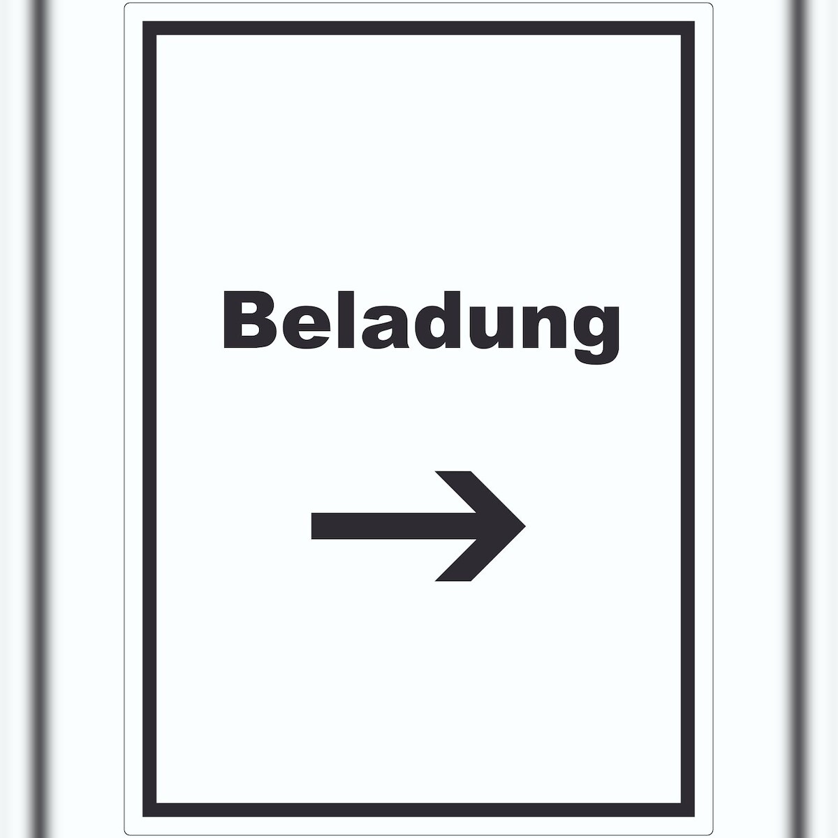 HB-Druck Beladung Aufkleber mit Text und Richtungspfeil rechts Transport Fracht hochkant A8 (52x74mm)