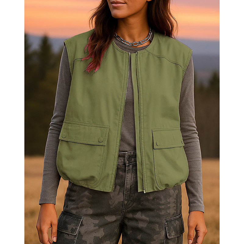 Women's Hiking Vest Cargo Vest Sleeveless Vest Outdoor Lightweight Breathable Zipper Polyester Black Pink Army Green Hunting Fishing Climbing