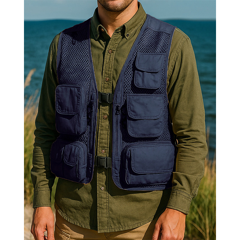 Men's Vest Gilet Fishing Vest Hiking Vest Sleeveless Vest Gilet Jacket Outdoor Street Holiday Daily Wear Streetwear Chic Modern Summer Spring Pocket Polyester Breathable Quick Dry Pure Color Zipper