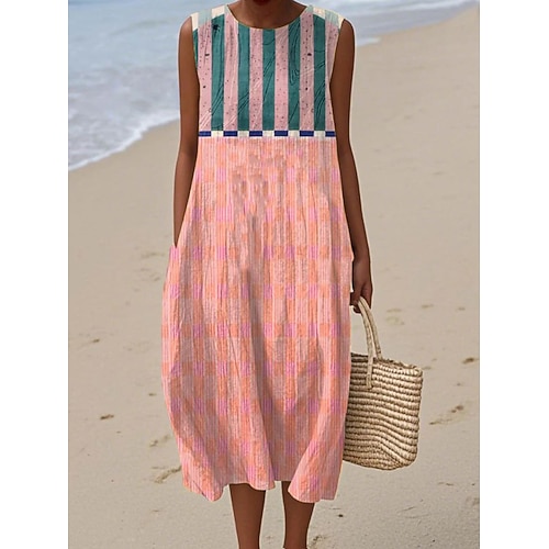 Per donna Abito Midi Vestito Estivo Abito a Tubino Abito a trapezio Vacanza Casual Boho Spiaggia Uscire Vestibilità comoda Grafico Geometrico Senza Maniche Girocollo Blu Bianco Giallo Rosa Estate