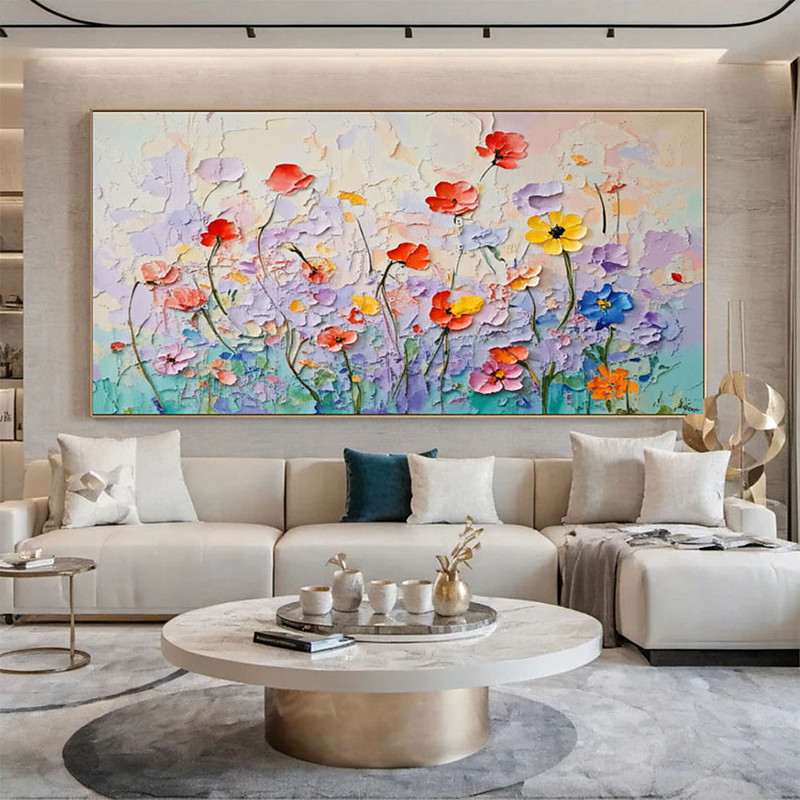 Hand-painted Colorful Flower Oil Painting on Canvas Original Large Flora Plant Landscape Wall Painting Modern Sofa Background Wall Decor
