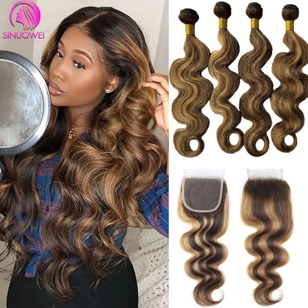 Water Wave Human Hair Weave Extension 3 Bundles With Closure 4x4 Lace Closure hair 10-28 inch Black Women