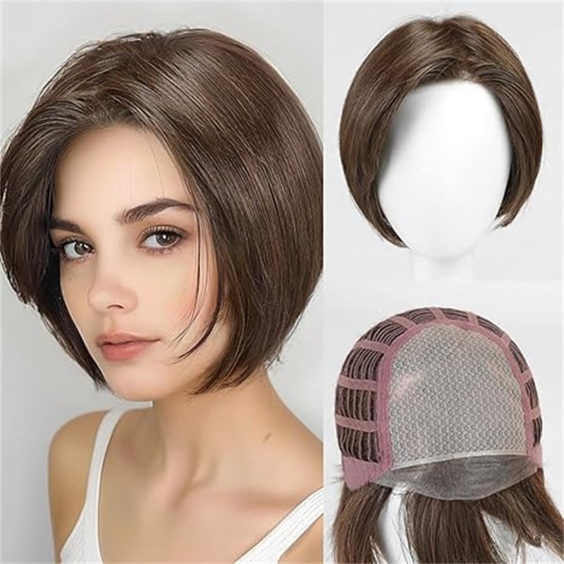 Women's Blonde Brown Highlight Short Straight Bob Wig Natural Looking Realistic Synthetic Hair Heat Resistant Side Part Elegant Daily Wear Fashion Style