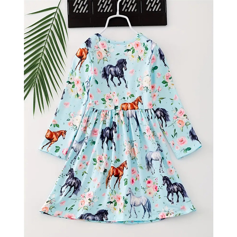 Girls' 3D Graphic Horse Dress Long Sleeve Summer Spring Vacation Daily Holiday Beautiful Sweet Kids 4-12 Years Casual Dress A Line Dress Knee-length Regular Fit