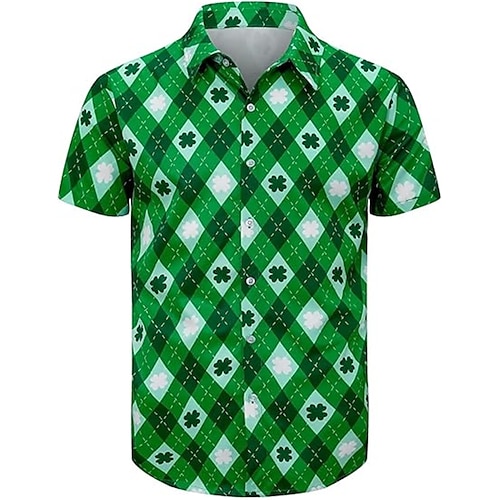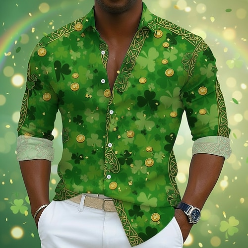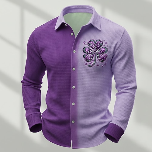 Festa di San Patrizio Per uomo Trifoglio Colore sfumato Camicia Camicia a nido d'ape Camicia casual Manica Lunga Vintage Retrò Ferie Estate Primavera Collo ripiegato Stampa 3D Testurizzato Camicie