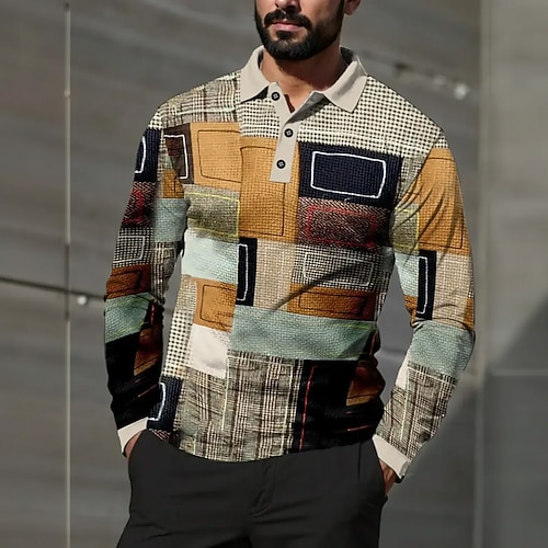 Per uomo Astratto Geometrico Magliette Polo a Nido d'Ape Manica Lunga Magliette polo Camicie con Colletto Business Casual Affari Abbigliamento da lavoro Abbigliamento quotidiano Bottoni Primavera