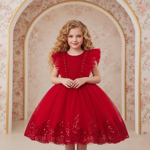 Abito da damigella d'onore bambina Ragazze Abito formale Abiti da sposa Feste Matrimonio Formale Formale Principessa Rete Tinta unica Senza Maniche Girocollo Blu Rosso bordeaux Dai 4 anni in su