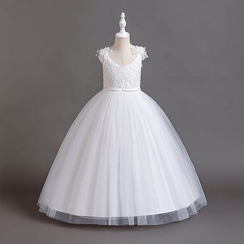 Abito da damigella d'onore bambina Ragazze Abito formale Abiti da sposa Feste Matrimonio Formale Adorabile Principessa Bello Abito per la Prima Comunione Patchwork Rete Floreale Senza Maniche