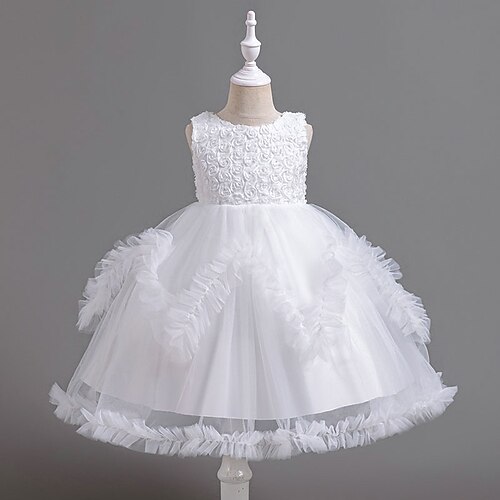 Abito da damigella d'onore bambina Ragazze Abito formale Abiti da sposa Feste Matrimonio Formale Moda Essenziale Principessa Abito per la Prima Comunione Rete Tinta unica Senza Maniche Girocollo