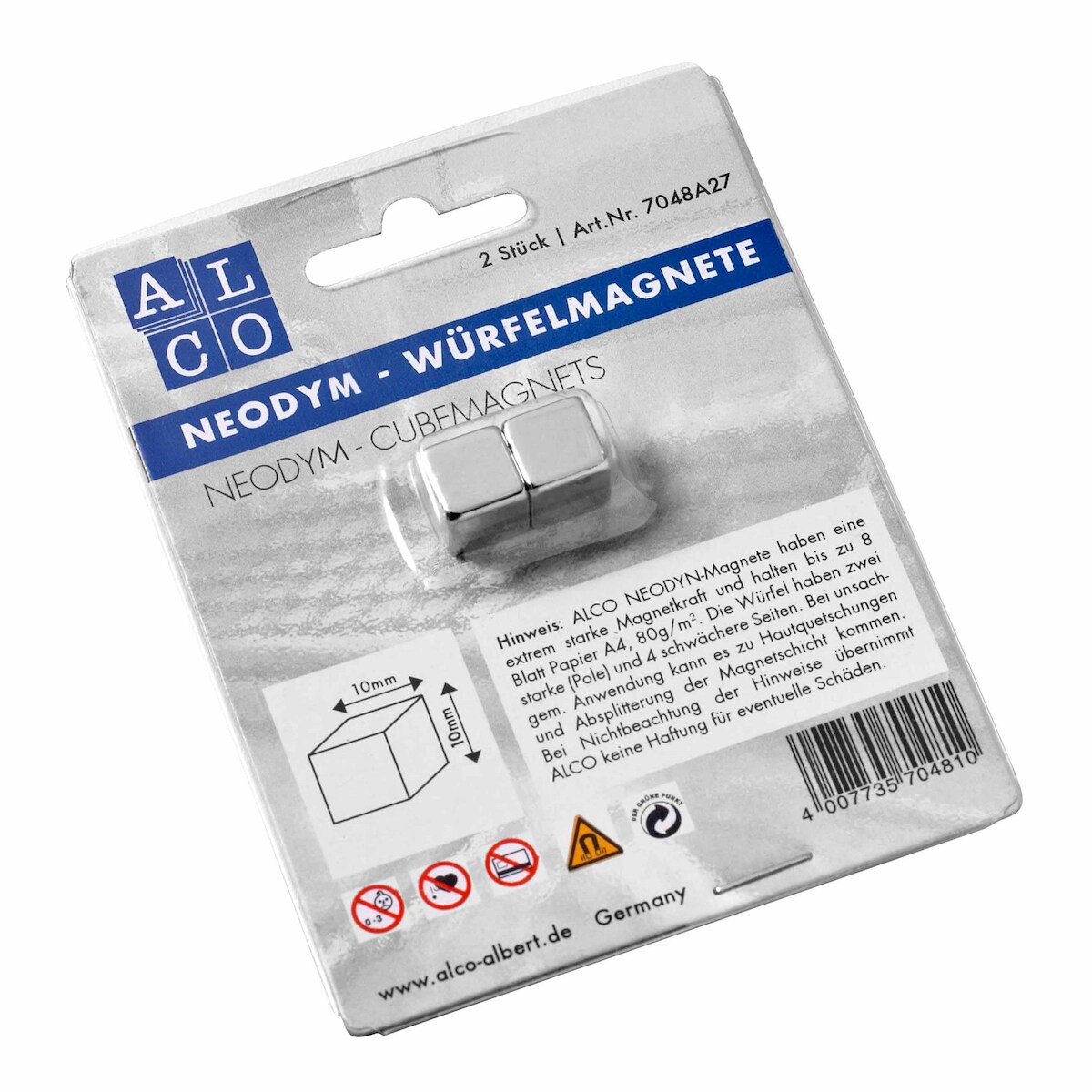 Alco Würfelmagnet Neodym 10x10x10mm silber 2 Stück