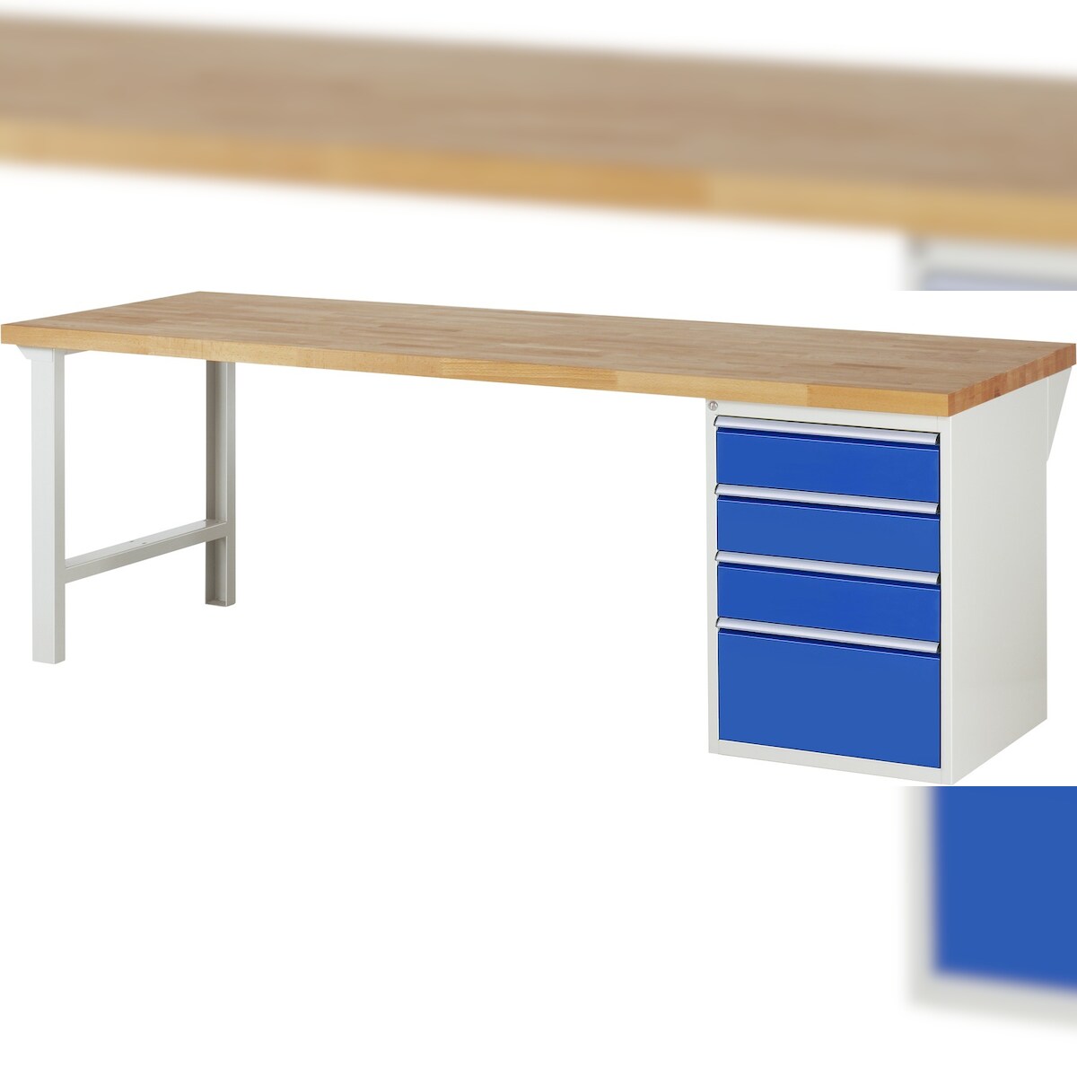 eurokraft pro Werkbank, Baukastensystem Serie 7000, 2 Schubladen, 1 Tür, 1 Schraubstock linksseitig, BxT 2500 x 900 mm
