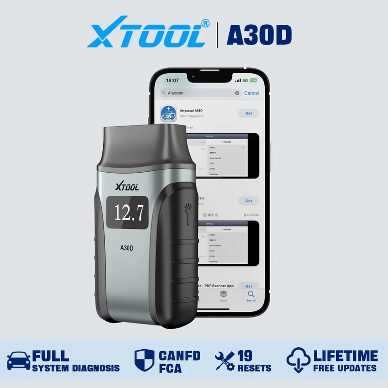 XTOOL A30D OBD2 Diagnostic Device BT, Wireless Car Diagnostic Tool with 19+ Reset, Bidirectional/Active Test, All Systems OBD Diagnostic Device for Android & iOS, Oil/ABS/SAS/BMS/DPF Reset, Lifetime Updates